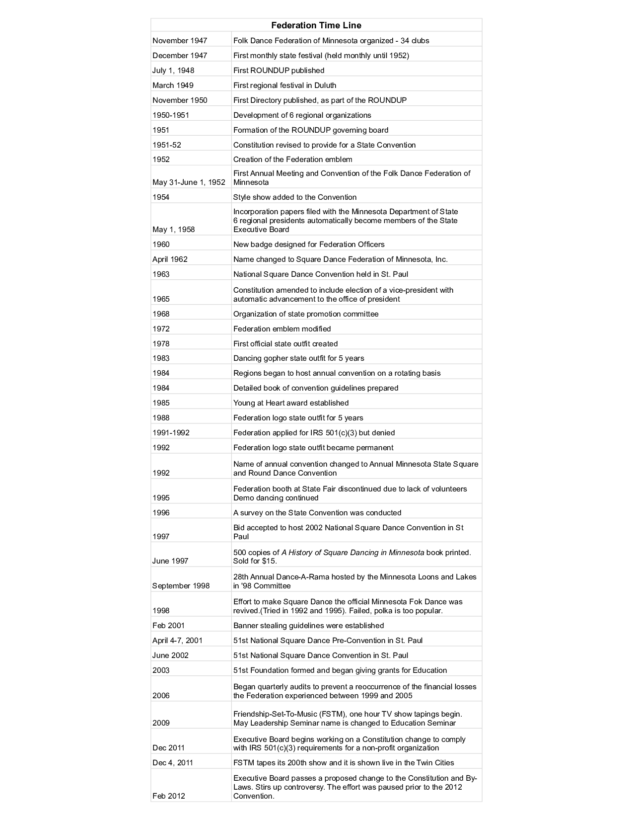 Square dancing and related dancing can flourish only through effective organizations. Dr. Ralph Piper and Morry Gelman should be credited with the organization of the Federation in 1947. (A History of Square Dancing in Minnesota, Dec 2012)